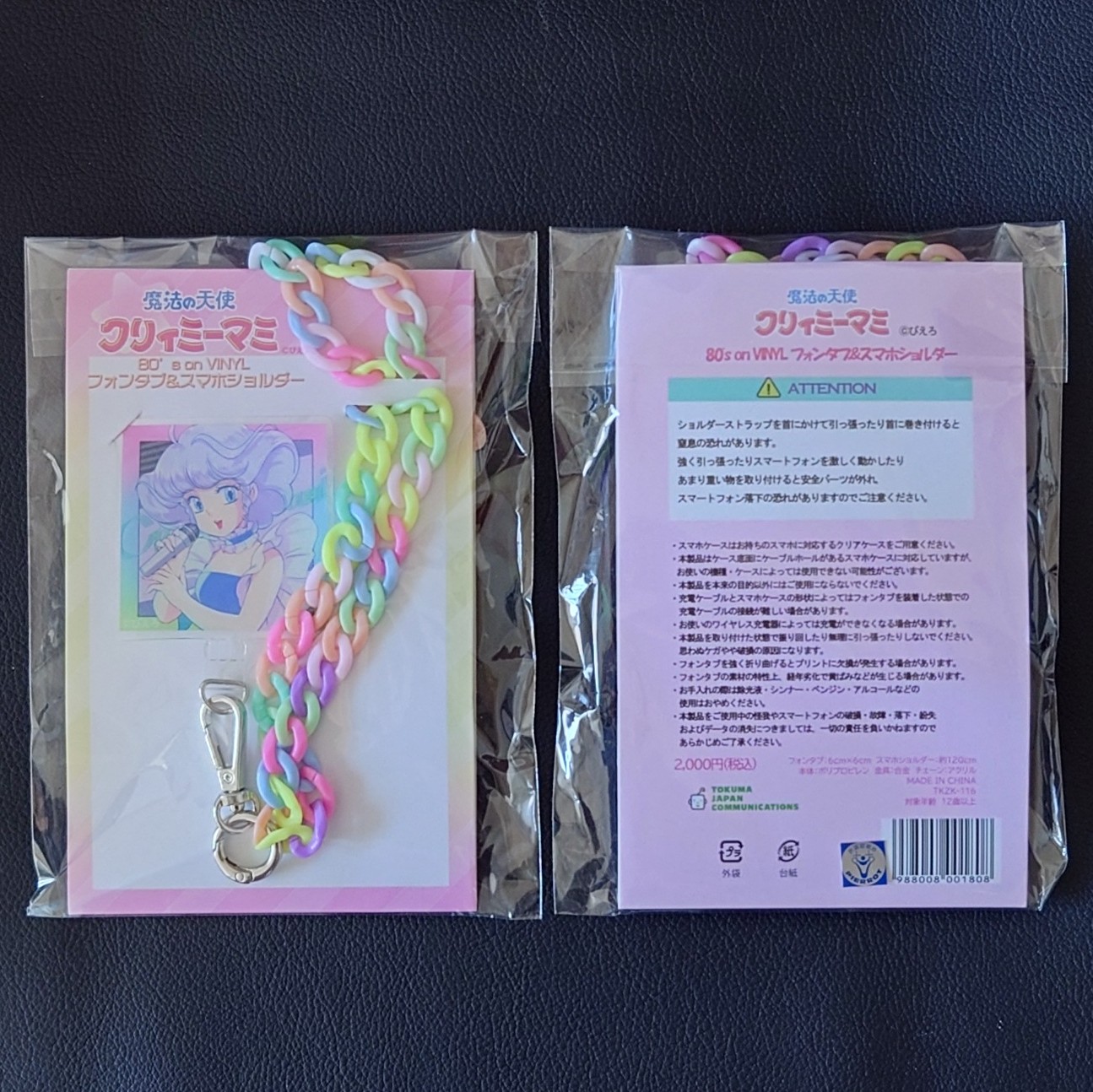 經典少女動畫 < 我係小忌廉 / 80's on VINYL > 彩色手機掛飾 少女アニメ動画 <魔法の天使クリィミーマミ / 80's on VINYL > フォンタブ&スマホショルダー 日本設計中國生產 / Design in Japan & Made in China 彩色手機掛飾全新未使用. TAG牌上印有由全新繪製的"我係小忌廉80's on VINYL 的主題插圖, 絶對係小忌廉FANS必存罕有珍品. 決定購買前請小心考慮, 不設退換. 一般在石硤尾站交收, 另可按買家要求安排順豐到付送貨. <尺寸> TAG牌:6cm x 6cm 手機掛帶:約長120cm <產品材質> 主體:聚丙烯 金屬配件:合金 鏈條:亞加力膠