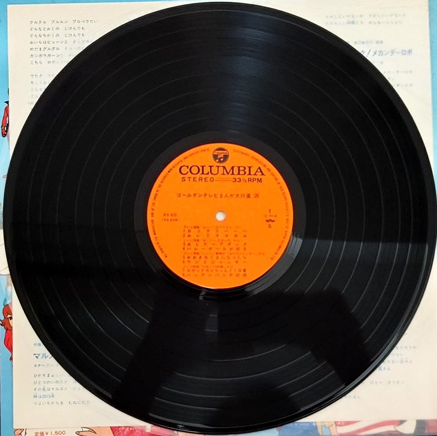 日本昭和動漫 < 黃金動漫大行進26 > 1977 LP黑膠碟專輯 アニメ漫画 < ゴールデン.テレビマンが大行進26 > 1977 LPレコード 主打動漫主題歌包括: 浣熊拉斯卡爾, 排球英雌, 熊之子傑基, 小百寳, 鐵臂馬魯斯, 連環小金鋼, 金鋼小寳貝, 等14首名主題/歌片尾歌. 日本生產 / Made in Japan LP 唱片狀況良好沒有明顯花痕並連側紙, 由於年代久遠封套及海報出現若干歲月痕跡, 決定購買前請小心考慮, 不設退換. 一般在石硤尾站交收. 另可按買家需要安排順豐到付送貨. 収録曲/TRACK LIST 「あらいぐまラスカル」 A1 ロックリバーへ A2 おいでラスカル 「あしたへアタック」 A3 あしたへアタック A4 バレーボールが好き 「くまの子ジャッキー」 A5 おおきなくまになったら A6 ランとジャッキー 「ロボット110番」 A7 ロボットガンちゃん110番 A8 ベッテンパンチの唄 「ジェッターマルス」 B1 マルス2015年 B2 少年マルス 「超合体魔術ロボギンガイザー」 B3 超常スアッシュ!ギンガイザー B4 さがしに行かないか 「合新戦隊メカンダーロボ」 B5 トライアタック!メカンダーロボ B6 さすらいの星ジミーオリオン