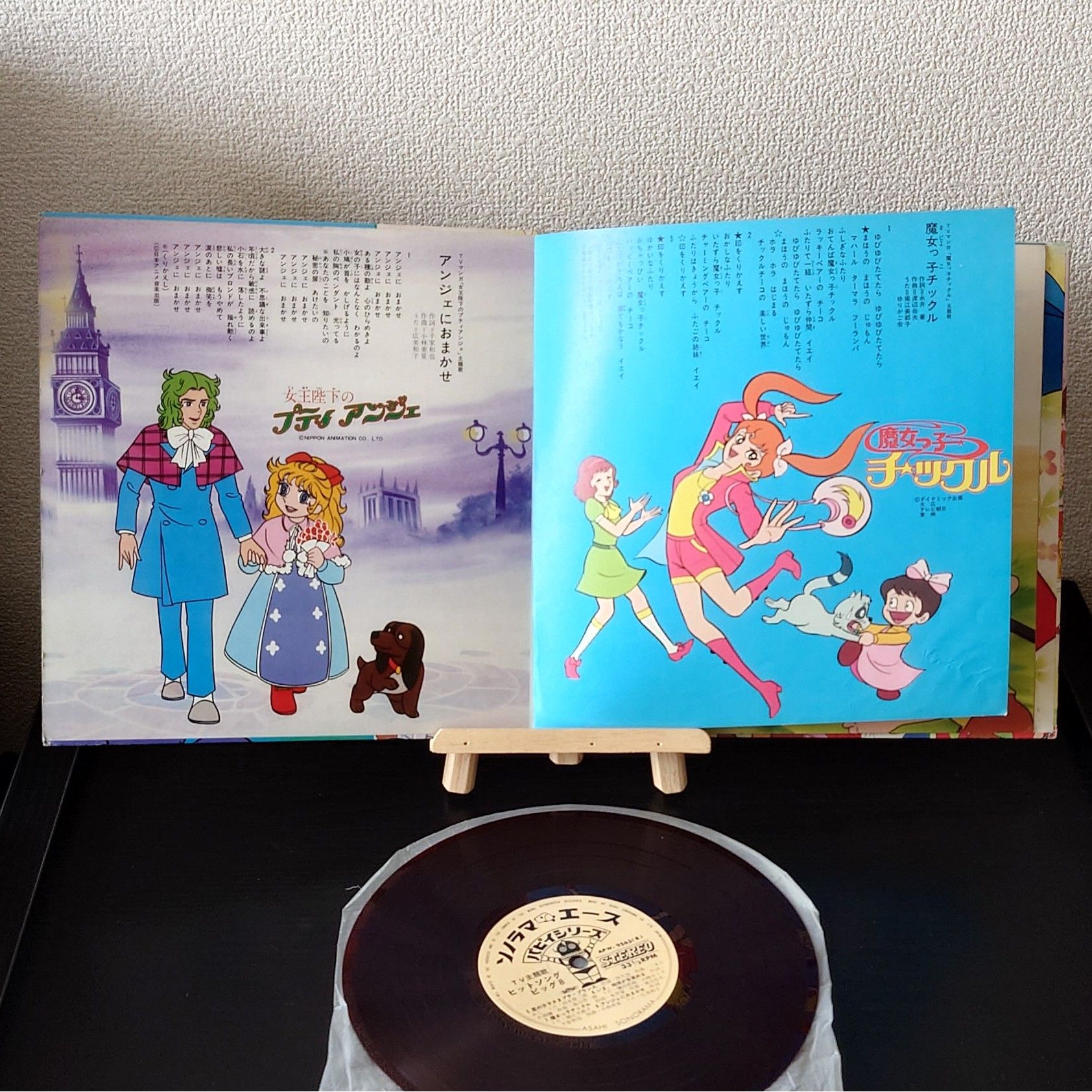 經典昭和動漫 < 電視主題歌集 Hit Song Big 8 > 1976 8寸紅膠專輯 昭和アニメ < テレビ主題歌集 ヒットソングビッグ8 > 1976 8インチ 赤盤レコード 主打動漫主題歌包括: 小英的故事, 窈窕淑女, 小甜甜, 若草的夏洛特, 小乖乖, 小仙女, 高立的未來世界, Angie Girl等等8首動漫主題曲. 日本生產 / Made in Japan 8寸 唱片狀態良好沒有花痕及本來沒有側紙, 唱片封套罕有以彩色拉頁方式印製, 屬罕有珍藏品. 封套及內頁由於年代久遠出玩若干破損及歲月痕跡, 價格反映質素. 決定購買前請小心考慮, 不設退換. 一般交收在石硤尾站, 可按買家需要另行安排順豐送貨. 曲目/SONG LIST A1. ペリーヌものがたり A2. はいからさんが通る A3. キャンディーキャンディー A4. 若草のシャルロット B1. 星の王子さまプチ・プランス B2. いま、地球が目覚める B3. 魔女っ子チックル B4. アンジェにおまかせ