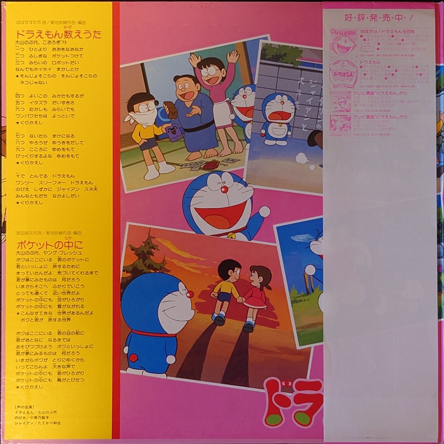 日本昭和動漫主題曲 < 電視動漫歌曲與故事Deluxe > 1980 LP黑膠專輯 昭和アニメ漫画 < テレビまんがうたとお話しデラックス > 1980 LPレコード 主打動漫主題歌/片尾歌包括: 多啦A夢, 魔法少女拉拉貝爾, The Littl' Bits, 青鳥・尋找真實的幸福, 加油權兵衛, 不守規矩的男孩八乍等12首名主題曲及插入歌. 日本生產 / Made in Japan LP 唱片狀況良好只有若干極淺花痕並附側紙, 由於年代久遠難免出現少許歲月痕跡, 決定購買前請小心考慮, 不設退換. 一般在石硤尾站交收, 另可按買家要求安排順豐送貨. 曲目/SONG LIST ドラえもん から A1 ドラえもん数えうた A2 ポケットの中に 魔法少女ララベル から A3 ハローララベル A4 魔法少女ララベル 森の陽気な小人たちベルフィーとリビット から A5 森へおいでよ A6 おやすみチュチュナ メーテルリソクの青い島~チルチルミチルの冒険旅行 から B1 幸せのバビラトラリラ B2 窓灯り がんばれゴンべ から B3 がんばれゴンべ B4 イタズラ3人組 男!あばれはっちゃく から B5 タンゴむりすんな! B6 そいつぁだれだ!
