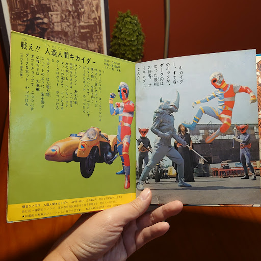 日本特撮 < 電腦奇俠 / 主題歌 / 片尾歌 / 漫畫唱片合集 > 1972 EP紅膠專輯 テレビ映画 < 人造人間キカイダー / OP / ED / アニメソノシート > 1972 EP赤盤レコード 日本生產 / Made in Japan EP 唱片狀況良好沒有明顯花痕, 唱片封套罕有以漫畫彩頁方式印製, 屬罕有珍藏品. 封套及內頁由於年代久遠難免出現歲月痕跡, 決定購買前請小心考慮, 不設退換. 一般在石硤尾站交收, 另可按買家要求安排順豐送貨. 曲目/SONG LIST A1 ゴーゴー・キカイダー A2 ドラマ:ダーク破かい部隊をつぶせ B1 戦え‼︎ 人造人間キカイダー B2 ドラマ:ダーク破かい部隊をつぶせ (つづき)