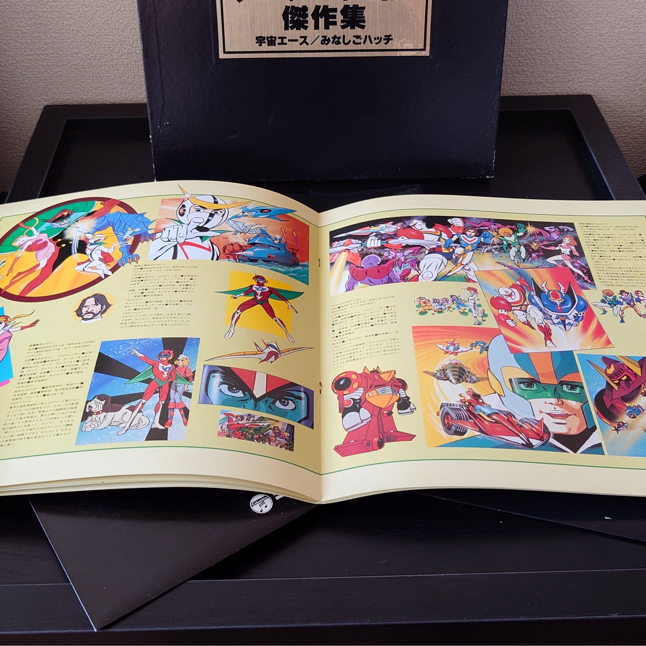 龍之子動畫系列<龍之子製作動畫傑作集>1976 LP黑膠唱片BOXSET 竜の子アニメ < タツノコプロ アニメーション傑作集 > 1976 LPレコードボックスセット 日本製 / Made in Japan LP 唱片狀況良好沒有花痕, 作品集合龍之子製作室各大動畫名著內歌曲, 屬龍之子FANS必存罕有珍品. 決定購買前請小心考慮, 不設退換. 一般可在石硤尾站交收, 另可按買家需要安排順豐到付送貨. 曲目/SONG LIST CB-7028 A1 星の炎に A2 マッハゴーゴーゴー A3 グズラ音頭 A4 紅 三四郎 A5 夕陽の男 A6 ガバトットのサンバ B1 ハクション大魔王のうた B2 アクビ娘 B3 みなしごハッチ B4 ママをたずねて B5 大ちゃんこの数え唄 B6 いなかっぺ大将 CB-7029 A1 決断 A2 男ぶし A3 楠の木モック A4 ボクは悲しい木の人形 A5 ガッチャマンの歌 A6 倒せ!ギャラクシー B1 かいけるタマゴン B2 けろっこデメタン B3 まけるなデメタン B4 たたかえ!キャシャーン B5 スワニーよ B6 俺は新人造人間 CB-7030 A1 新みなしごハッチ A2 美しの丘 A3 ぼくたきょうだいてんとう虫 A4 ぼくらそろって一週間 A5 戦えポリマー A6 転身ポリマー B1 テッカマンの歌 B2 スペースナイツの歌 B3 行くぞ!ゴーダム B4 ゴワッパー5の歌 B5 ポールの冒険 B6 オカルトハンマーのうた CB-7031 A1 ぼくらは旅の音楽隊 A2 風船少女のうた A3 わたしはテンプル A4 風船少女テンプルちゃん A5 やるぞ一発!野球道 A6 ホーマーズの歌 B1 プロローグ B2 ガッチャマンのテーマ B3 時の子守唄 B4 ジョーのテーマ B5 総裁Xのテーマ