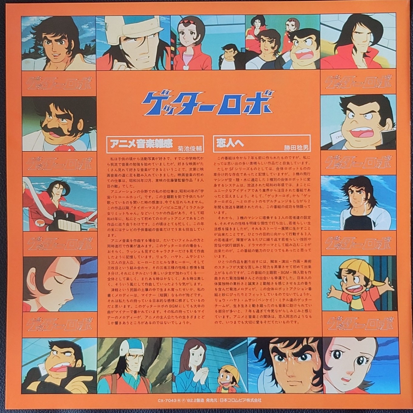石川賢 < 三一萬能俠 OST > 1982 LP黑膠專輯 石川賢 < ゲッターロボ OST > 1982 LPレコード 日本生產 / Made in Japan LP 唱片狀況良好沒有花痕連側紙, "三一萬能俠"黑膠大碟向來一碟難求, 實屬罕有珍藏品. 封套及內頁由於年代久遠難免出現少許歲月痕跡, 決定購買前請小心考慮, 不設退換. 一般在石硤尾站交收, 另可按買家需要另行安排順豐到付送貨. 曲目/SONG LIST A1 オープニング 1:41 A2 浅間学園 5:10 A3 ゲッター・チーム 6:12 A4 ブリッジ・オブ・ゲッター 1:42 A5 恐竜帝国 4:03 A6 緊迫感 3:57 A7 ゲット・マシン 4:31 B1 戦闘 7:14 B2 危機 7:49 B3 悲しみ 4:59 B4 平和 2:51 B5 エンディング 1:34