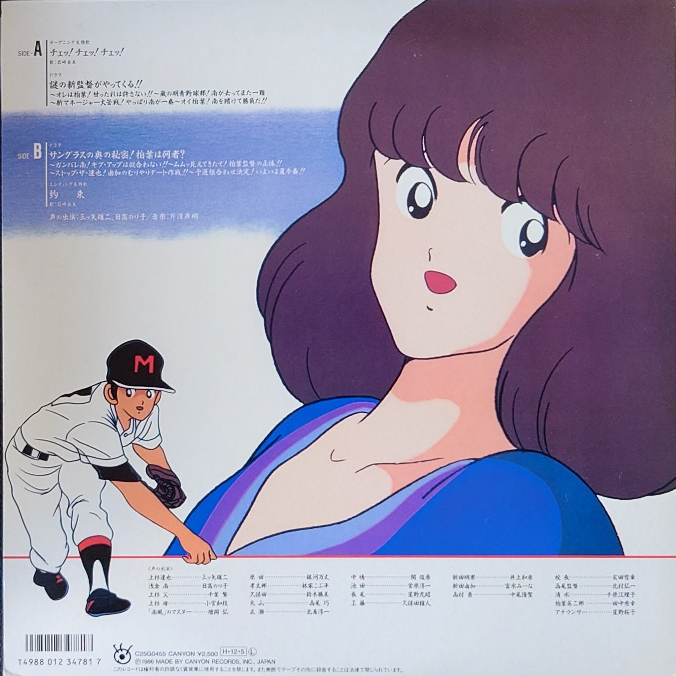 日本經典動漫 < 安逹充 TOUCH 第3部 動畫編 > 1986 LP黑膠唱片 昭和アニメ < 安逹充 タッチ 第3部 ドラマ編 > 1986 LPレコード 日本生產 / Made in Japan LP 唱片狀況良好沒有明顯花痕並連側紙, 內附罕有彩頁歌紙, 屬安逹充TOUCH/隣家女孩FANS必存罕有珍品. 由於年代久遠封套及海報出現若干歲月痕跡, 決定購買前請小心考慮, 不設退換. 一般在石硤尾站交收, 另可按買家要求安排順豐送貨. 収録曲/TRACK LIST A1 オープニング主題歌 チェッ!チェッ!チェッ! A2 ドラマ 謎の新監督がやってくる!! A3 ~俺は柏葉! 甘ったれは許さない!! A4 ~嵐の明青野球部! 南が去ってまた一難 A5 ~新マネージャー大苦戦! やっぱり南が一番 A6 ~オイ柏葉! 南を賭けて勝負だ!! B1 ドラマ サングラスの奥の秘密! 柏葉は何者? B2 ~ガンバレ南! ギブ・アップは似合わない!! B3 ~ムムッ見えてきたぞ! 柏葉監督の正体!! B4 ~ストップ・ザ・達也! 由加のむりやりデート作戦!! B5 ~予選組合せ決定! いよいよ夏本番!! B6 エンディング主題歌 約束
