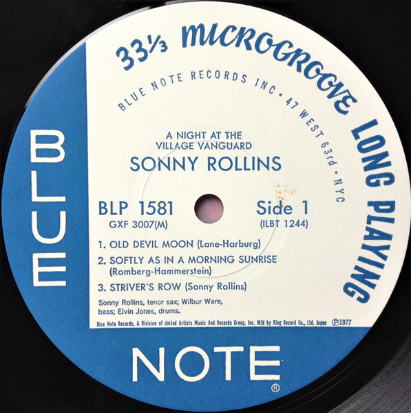 (爵士樂) Blue Note < Sonny Rollins – A Night At The "Village Vanguard > 1977 LP黑膠專輯