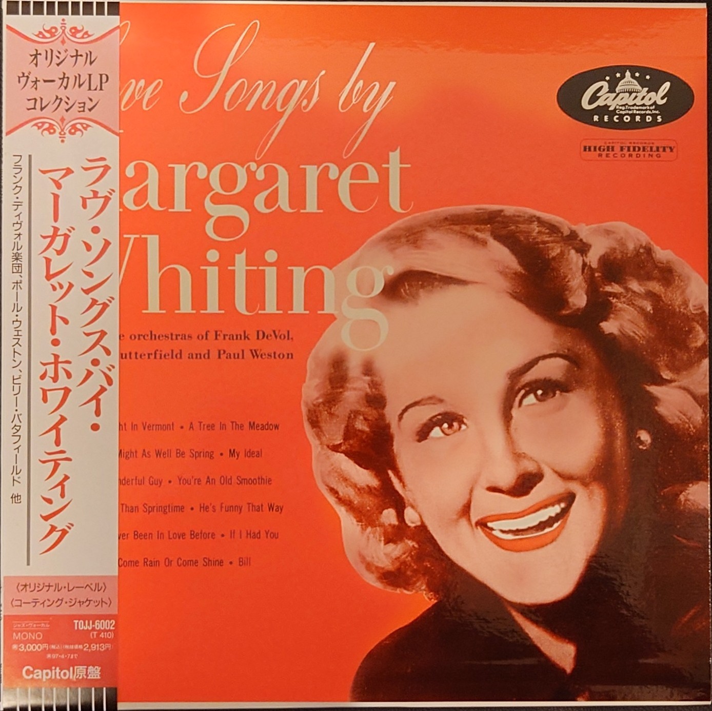 (爵士樂) Margaret Whiting<日版 - Love Songs>1995 LP黑膠專輯 (ジャズ) マーガレット・ホワイティング< 国内盤 - ラヴ・ソング・バイ・マーガレット・ホワイティング >1995 LP レコード 日本製 / Made in Japan LP 唱片狀況良好連側紙. 封套及內頁由於年代久遠難免出現少許歲月痕跡, 決定購買前請小心考慮, 不設退換. 一般可在石硤尾站交收, 另可按買家需要安排順豐到付送貨. 曲目/SONG LIST A1 My Ideal A2 Moonlight In Vermont A3 Bill A4 You're An Old Smoothie A5 Younger Than Springtime A6 I've Never Been In Love Before B1 It Might As Well Be Spring B2 A Tree In The Meadow B3 He's Funny That Way B4 A Wonderful Guy B5 Come Rain Or Come Shine B6 If I Had You