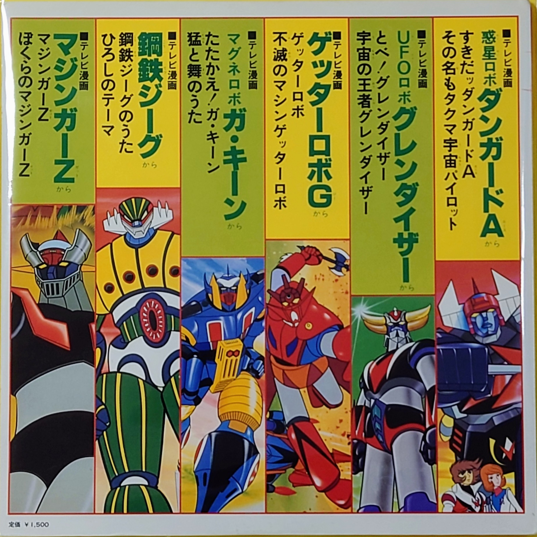 日本昭和動漫主題曲 <俺才是真正真銘的合體聲音> 1977 LP黑膠唱片 昭和アニメ漫画 <ファミリー・ベスト / これがほんもの合体サウンドだ! > 1977 LPレコード 主打動漫主題歌/片尾歌包括: 太空保衛者, 巨靈神, 新三一萬能俠, 陰陽電磁俠, 金鋼飛天鑽, 鐵甲萬能俠等12首名主題曲/片尾曲. 日本生產 / Made in Japan LP 唱片狀況良好沒有花痕連側紙, 唱片封套歌詞以個別彩頁方式印製, 屬罕有珍藏品. 封套及內頁由於年代久遠難免出現少許歲月痕跡, 決定購買前請小心考慮, 不設退換. 一般交收在石硤尾鐵路站交收, 可按買家需要另行安排順豐送貨. 曲目/SONG LIST 惑星ロボ ダンガードA A1 ヤング・フレッシュ– すきだッダンガードA A2 その名もタクマ宇宙パイロット UFOロボ グレンダイザー A3 コロムビアゆりかご会 – とべ!グレンダイザー A4 こおろぎ'73 – 宇宙の王者グレンダイザー ゲッターロボG A5 ゲッターロボ A6 コロムビアゆりかご会– 不滅のマシンゲッターロボ マグネロボ ガ・キーン B1 こおろぎ'73– たたかえ!ガ・キーン B2 猛と舞のうた 鋼鉄ジーグ B3 こおろぎ'73, コロムビアゆりかご会– 鋼鉄ジーグのうた B4 こおろぎ'73– ひろしのテーマ マジンガーZ B5 マジンガーZ B6 コロムビアゆりかご会 – ぼくらのマジンガーZ