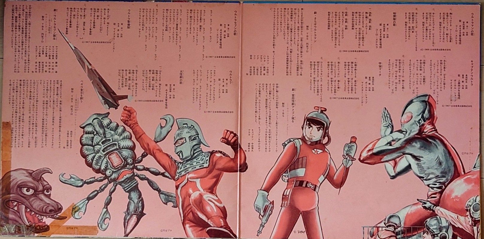 日本特撮 < ULTRA > LP黑膠唱片 昭和特撮 < ウルトラ > LPレコード 日本生產 / Made in Japan LP 唱片狀態良好沒有花痕. 封套及內頁由於年代久遠難免出現歲月痕跡, 決定購買前請小心考慮, 不設退換. 一般可在石硤尾站交收. 另可按買家要求安排順豐到付送貨. 曲目/SONG LIST A1 ウルトラマンの歌 A2 特捜隊の歌 A3 劇:さらばウルトラマン(怪獣ゼットン)(TVサウンド・トラックより) A4 キャプテンウルトラマン A5 宇宙マーチ A6 劇:雷雨怪獣アメゴン現る(TVサウンド・トラックより) B1 ウルトラセブンの歌 B2 ウルトラ警備隊 B3 劇:ウルトラセブン誕生(姿なき挑戦者)(TVサウンド・トラックより) B4 Ultra 7 B5 大怪獣の歌 B6 劇:ぺギラ東京を襲う(東京氷河期)(TVサウンド・トラックより)
