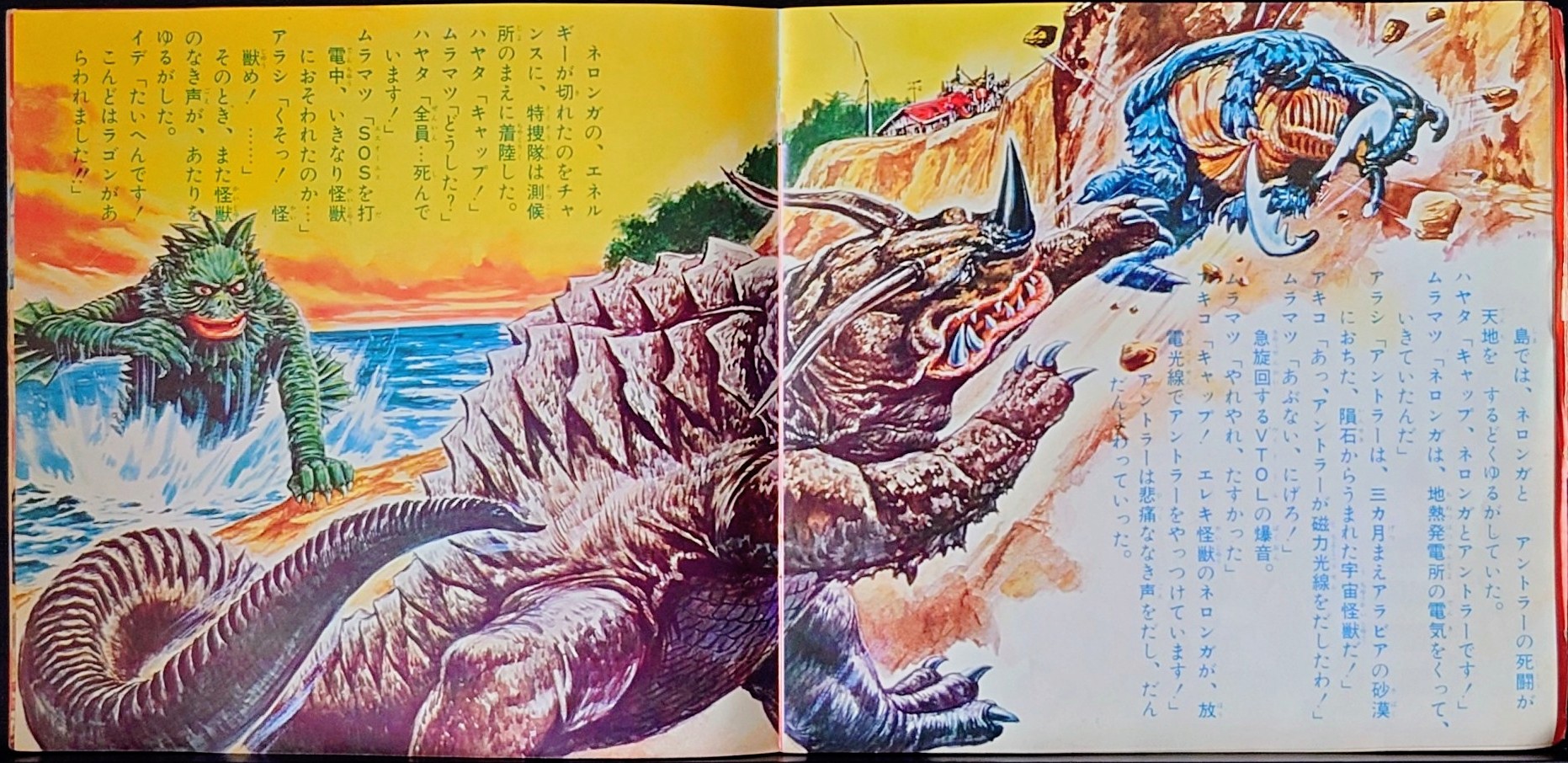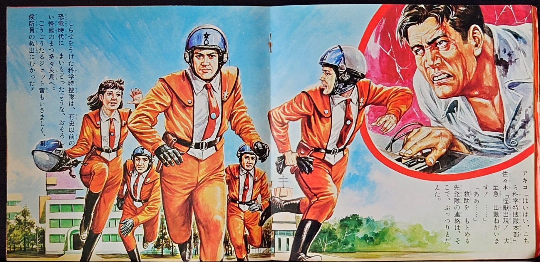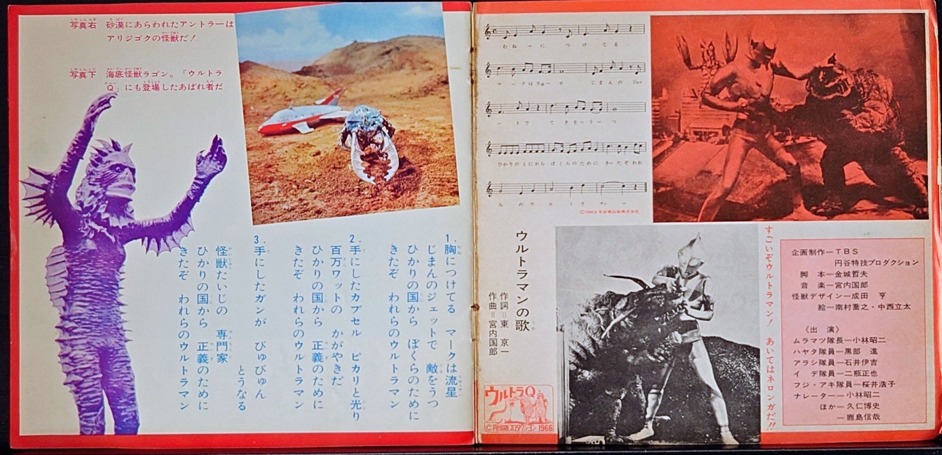 日本特撮 < ULTRAMAN 3大怪獸對決 主題歌漫畫合集 > 1967 EP綠膠唱片 昭和特撮<ウルトラマン3大怪獣対決 まんがソノシート> 1967 EP緑盤レコード 日本生產 / Made in Japan EP 唱片狀況良好沒有花痕, 唱片封套罕有以漫畫彩頁方式印製, 屬罕有珍藏品. 封套及內頁由於年代久遠難免出現歲月痕跡, 決定購買前請小心考慮, 不設退換. 一般交收在石硤尾站, 可按買家需要另行安排順豐送貨. 曲目/SONG LIST A1 ウルトラマンの歌 A2 特捜隊の歌 A3 10大怪獣のなき声 B1 ドラマ=恐怖の怪獣島