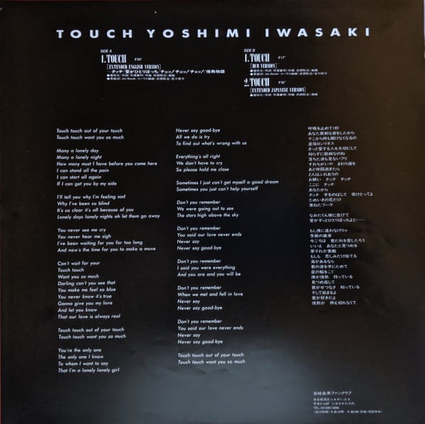 (極罕美品) 安達充 < 岩崎良美 - Touch 12 Inch Club Mix > 1987 12寸黑膠唱片