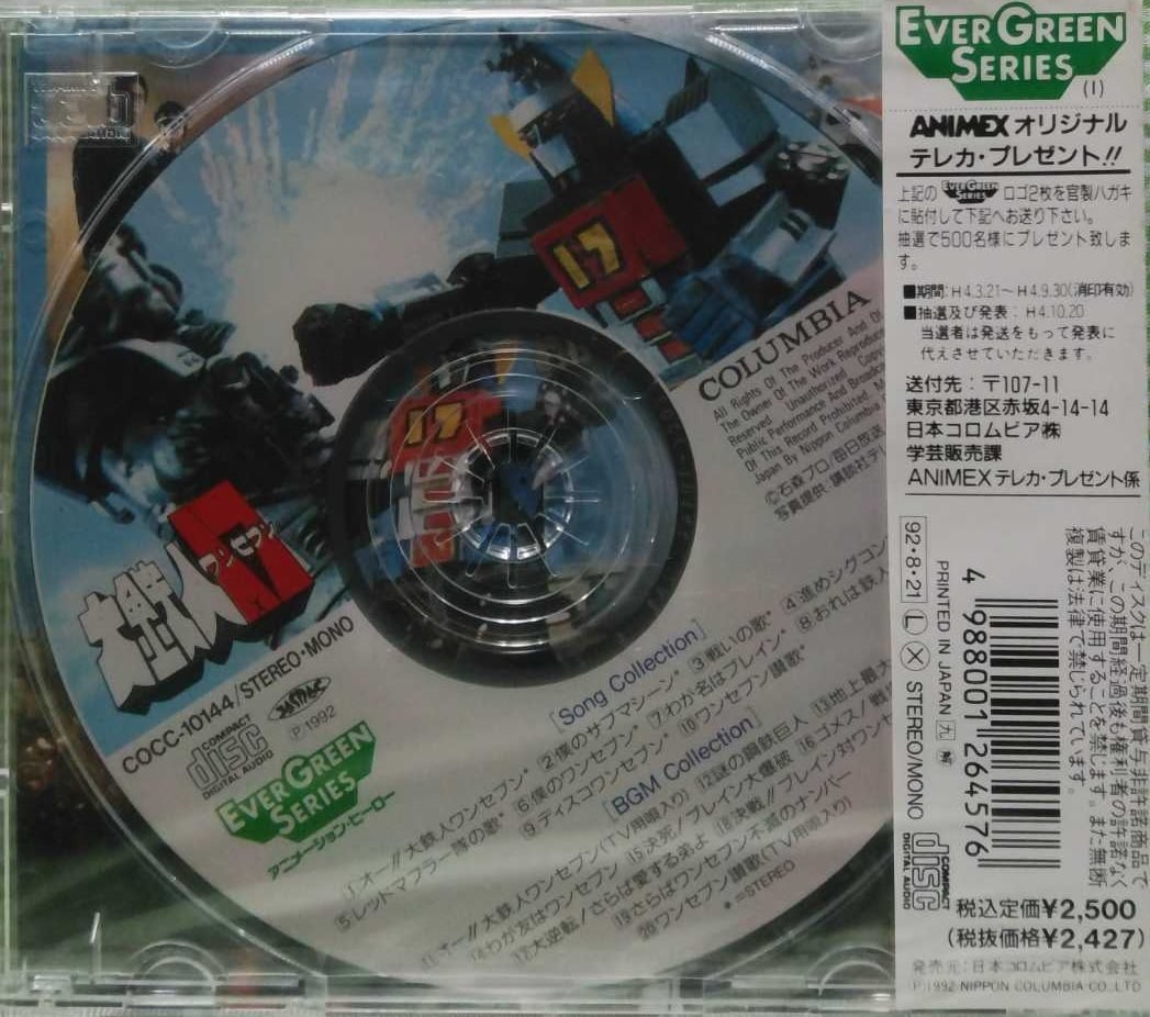 特撮テレビ映画 <大鉄人ワンセブン エヴァーグリーン・シリーズ > 1992 CDアルバム