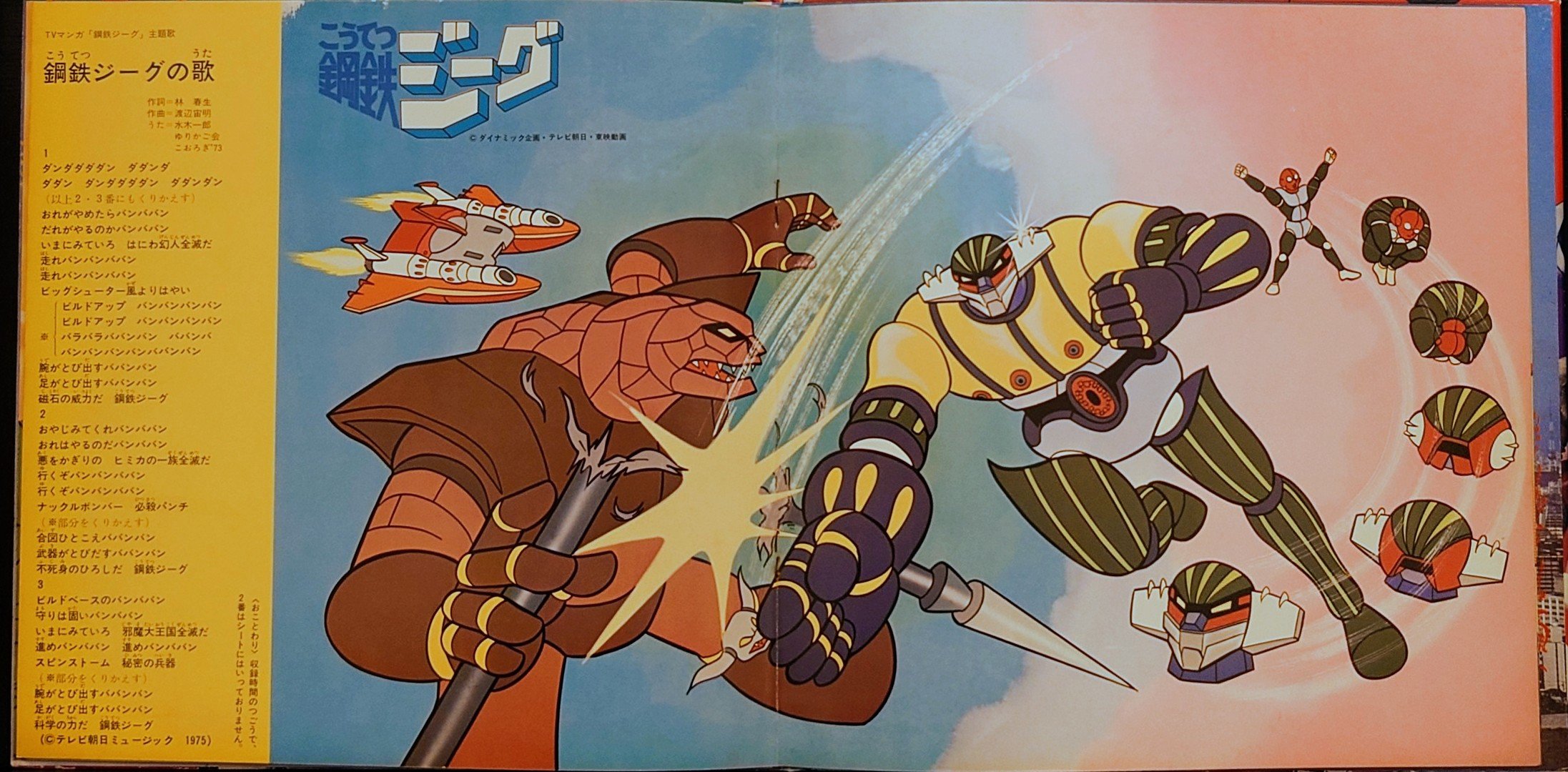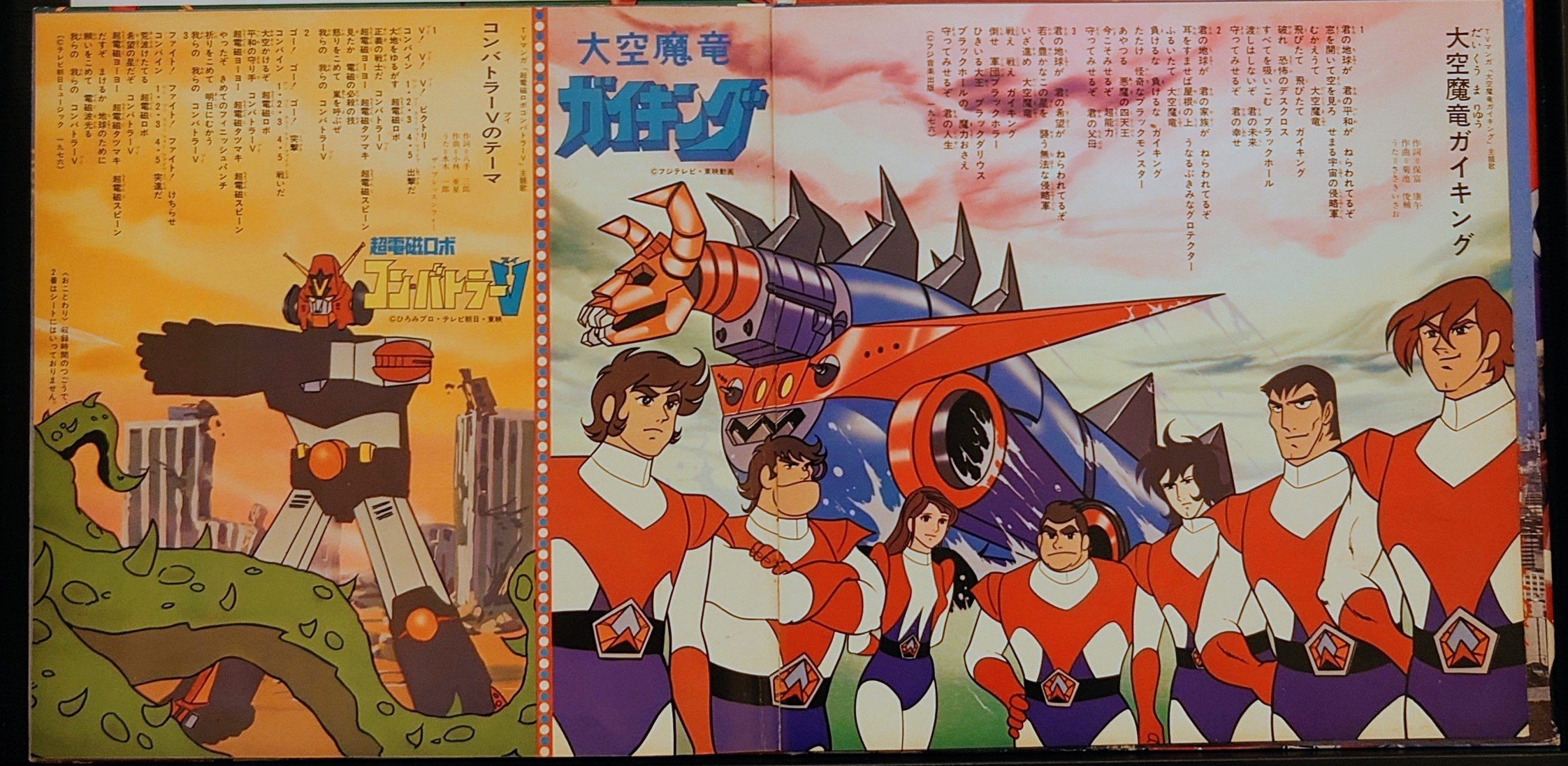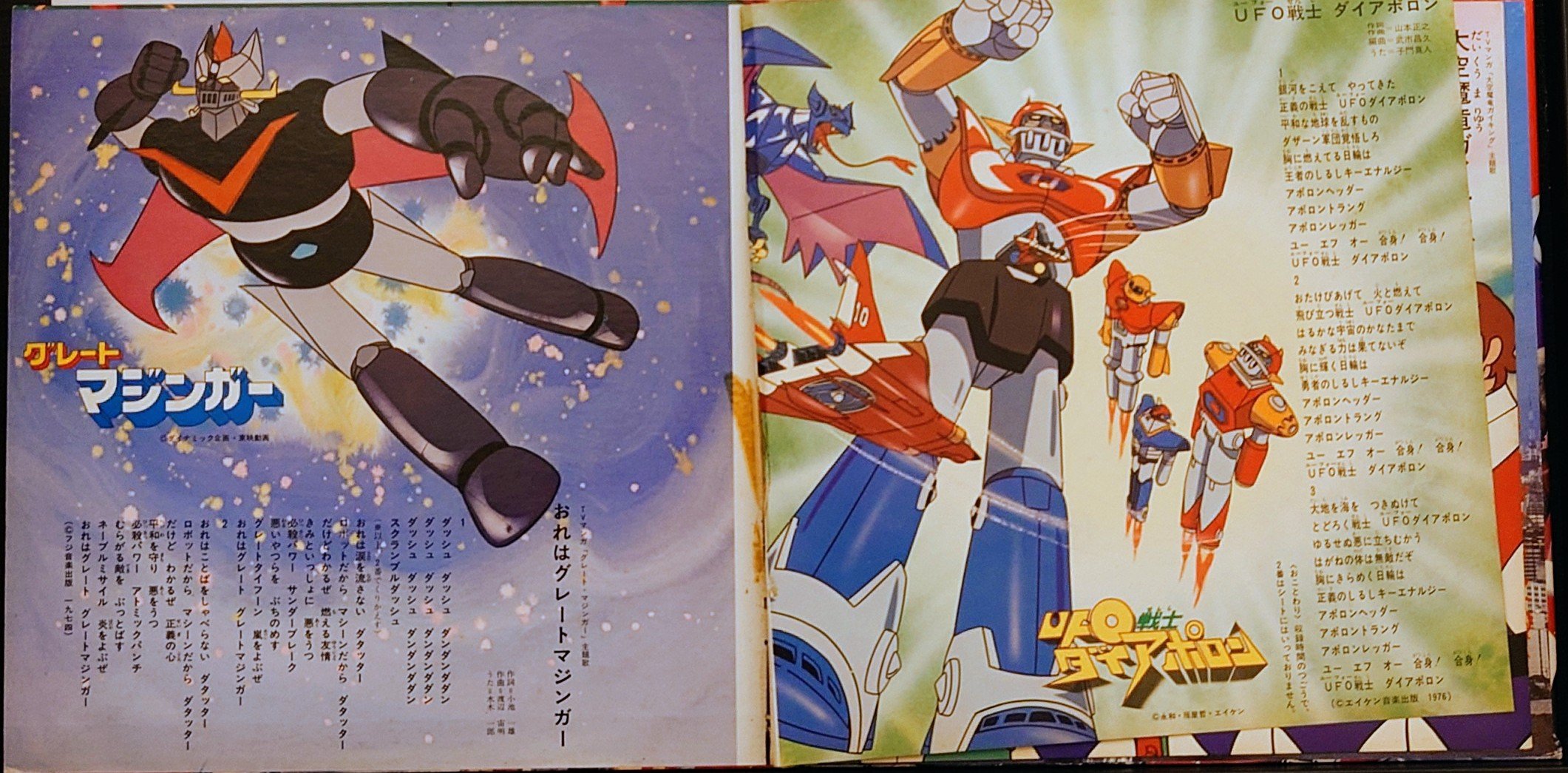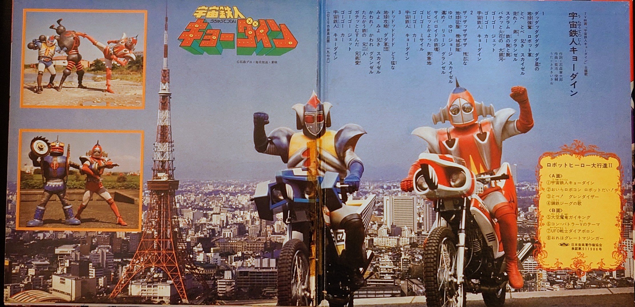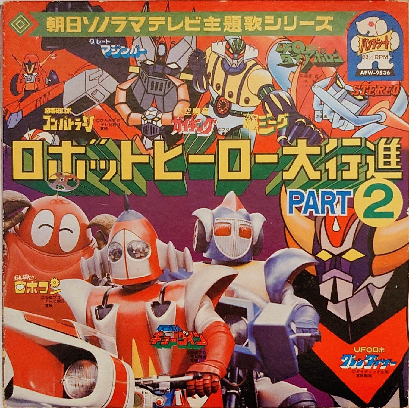 朝日Sororama電視主題歌集 < 機械人英雄大行進2 > 1976 8寸紅色軟盤 朝日ソノラマテレビ主題歌シリーズ < ロボットヒーロー大行進PART2 > 1976 赤盤ソノシートレコード 主打動漫主題歌包括: 天地雙龍, 小露寶, 巨靈神, 金鋼飛天鑽, 宇宙癹龍, 超力電磁俠, 太寶郎, 鐵甲萬能俠2號等8首名曲. 日本生產 / Made in Japan 8寸紅色軟盤為照和時代常用作卡通唱片的特別尺寸, 每面通常包含4首歌曲, 本來沒有側紙. 唱片狀況良好沒有明顯花痕, 因出品年代久遠, 封套/內頁有若破損及干使用痕跡, 決定購買前請小心考慮, 不設退換. 一般在石硤站交收, 另可按買家要求安排順豐送貨. 収録曲/TRACK LIST A1 宇宙鉄人キョーダイン A2 がんばれ!!ロボコン A3 UFOロボ グレンダイザー A4 鋼鉄ジーグ B1 大空馬竜ガイキング B2 超電磁ロボ コンバトラーV B3 UFO戦士 ダイアポロン B4 グレートマジンガー