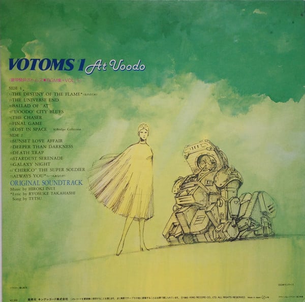 經典動畫 < 裝甲騎兵Votoms BGM Vol.1~4 連Tote Bag > 1983~84 LP黑膠專輯 アニメ映画 < 装甲騎兵ボトムズ BGM集 Vol.1~4 トートバッグ付き > 1983~84 LPレコード 日本製/Made In Japan LP 唱片狀況良好沒有花痕連側紙, Vol.1~4封面均由"塩山紀生"老師繪製, 特別套裝另附只限東京稻城市會場內限定發售的裝甲騎兵Tote Bag(全新未使用), 別具珍藏意義. 封套及內頁由於年代久遠難免出現少許歲月痕跡, 決定購買前請小心考慮, 不設退換. 一般在石硤尾站交收, 另可按買家需要另行安排順豐送貨. 特別套裝包括裝甲騎兵Votoms BGM Vol.1~4 四張黑膠唱片及會場限定之Tote Bag, 一套5件, 只有一套作特別價格發售. 售完即止.