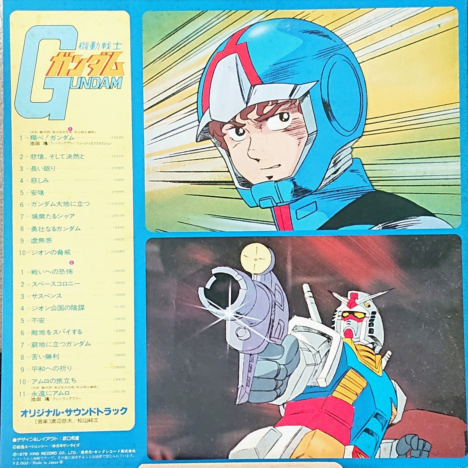 經典動畫 < 機動戰士 - 高逹 OST > 1979 LP黑膠唱片 昭和アニメ < 機動戦士ガンダム OST > 1979 LPレコード 日本製/Made In Japan LP唱片狀況良好沒有花痕連側紙, 封面由大河原邦男老師繪製, 另附大型POSTER, 別具珍藏意義. 封套及內頁由於年代久遠難免出現少許歲月痕跡, 決定購買前請小心考慮, 不設退換. 一般交收在石硤尾站, 可按買家需要另行安排順豐送貨. 曲目/SONG LIST A1 翔べ!ガンダム A2 悲愴、そして決然と A3 長い眠り A4 慈しみ A5 安堵 A6 ガンダム大地に立つ A7 颯爽たるシャア A8 勇壮なるガンダム A9 虚無感 A10 ジオンの脅威 B1 戦いへの恐怖 B2 スペースコロニー B3 サスペンス B4 ジオン公国の陰謀 B5 不安 B6 敵地をスパイする B7 窮地に立つガンダム B8 苦い勝利 B9 平和への祈り B10 アムロの旅立ち B11 永遠にアムロ